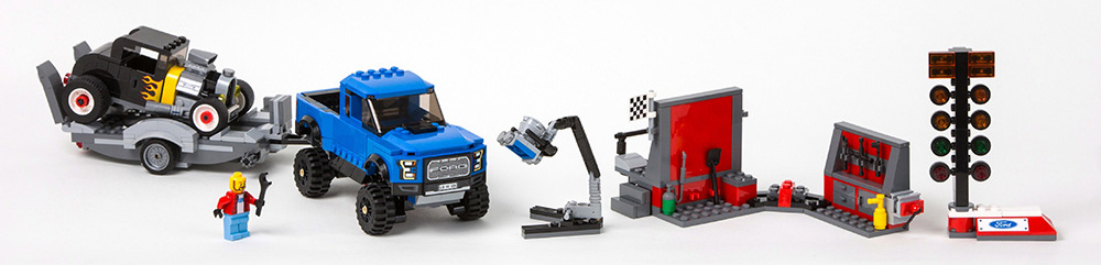 ชุดตัวต่อ LEGO Ford Mustang GT ประกอบไปด้วยตัวต่อทั้งหมด 185 ชิ้น มาพร้อมตัวต่อ LEGO ป้ายบอกเวลา และตัวนักแข่งไว้ด้วย ในราคา 14.99 ดอลลาร์สหรัฐ ส่วนชุดตัวต่อ LEGO Ford F-150 Raptor ประกอบไปด้วยตัวต่อทั้งหมด 664 ชิ้น มาพร้อมอุปกรณ์ชิ้นส่วนอื่นๆ เช่น โรงจอดรถ รถเทรลเลอร์ เกวียนลากต้นคริสมาส ในราคา 49.99 ดอลลาร์สหรัฐ