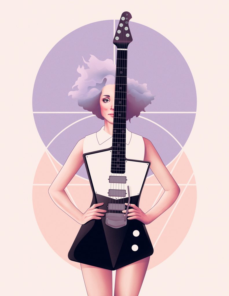 ไม่บ่อยนักที่เราจะเห็นสาวๆ จับกีตาร์ตัวโปรดออกแสดงงานสำคัญ อาจเป็นเพราะความเทอะทะ ใหญ่โตของบอดี้กีตาร์ ที่ทำให้ผู้หญิงส่วนใหญ่เลือกควงไมค์ร้องเพลงอย่างเดียวจะดีกว่า และที่ผ่านมากีตาร์ที่ผลิตมาเพื่อสาวๆ ส่วนใหญ่มักจะปรับเปลี่ยนแค่ให้เป็นสีชมพูหรือออกแบบให้มีลวดลายน่ารักแค่เท่านั้น ซึ่งกีตาร์ที่ทำออกมาแต่ละตัวนั้นในระยะยาวอาจส่งผลต่ออาการปวดสรีระส่วนต่างๆ เมื่อสาวๆ จับมันนานๆ อาทิ เอวหรือหลัง แต่ล่าสุดผู้ผลิตกีตาร์ Ernie Ball ได้ร่วมมือกับ Annie Clark หรือนักร้อง St.Vincent ทำตามฝันผลิตกีตาร์เพื่อสรีระของผู้หญิงโดยเฉพาะ