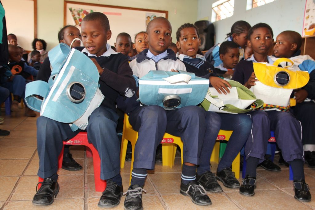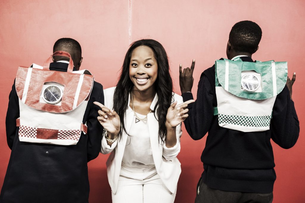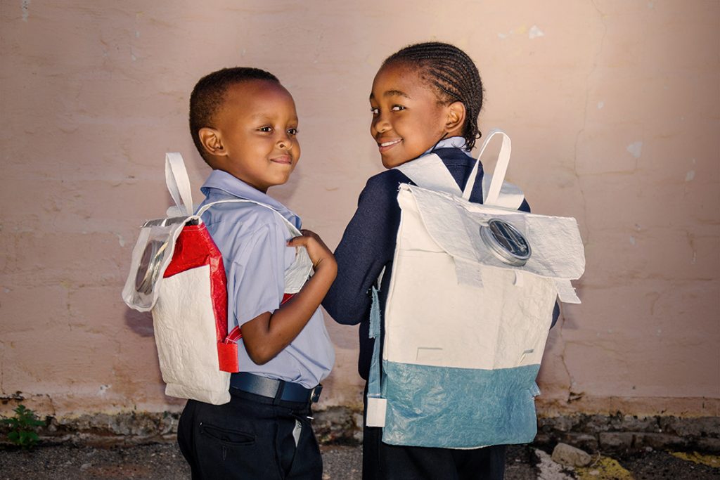 ให้เด็กๆ สะพายกระเป๋าแผงโซล่าไปพร้อมๆ กับการเก็บเกี่ยวพลังงานแสงอาทิตย์จากกระเป๋ารีไซเคิลที่ทำจากถุงซื้อของทั่วไป ถักทอเป็นเนื้อผ้าเส้นใยพลาสติก จากนั้นนำแผงโซล่าเซลล์ติดตั้งบริเวณกระเป๋าด้านหน้าส่วนบน พลังงานแสงอาทิตย์ที่เก็บได้ขณะเดินทางไป-กลับโรงเรียนสามารถเปลี่ยนเป็นพลังงานไฟฟ้าให้ความสว่างสูงสุดที่ 12 ชั่วโมง เพื่อให้เด็กๆได้ทบทวนบทเรียนในยามค่ำคืนโดยไม่ต้องใช้น้ำมันก๊าด พร้อมเพิ่มความปลอดภัยด้วยแผ่นสะท้อนแสงช่วยให้เด็กปลอดภัยขณะเดินบนท้องถนนในช่วงเช้ามืด ที่สำคัญไม่ว่าฝนจะตกมากน้อยแค่ไหน กระเป๋าใบนี้สามารถกันน้ำปกป้องหนังสือที่อยู่ด้านในได้ นอกจากนี้ยังสร้างรายได้เสริมให้กับชาวพื้นเมืองเพราะทุกชิ้นของกระบวนการผลิตกระเป๋าใบนี้เป็นกระเป๋าทำมือจากคนในชุมชน