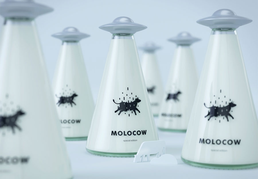 ไอเดียนี้เป็นการครีเอทบรรจุภัณฑ์สำหรับใส่นม เพราะหากมองบรรจุภัณฑ์ใส่นมในบ้านเรา เราจะเห็นนมกล่องหรือนมขวดมาในรูปลักษณ์ที่แสนจะเรียบง่ายจนไร้ซึ่งเอกลักษณ์และความครีเอท แต่สำหรับบรรจุภัณฑ์ใส่นมของ Molocow นั้นกลับคิดต่างออกไป ด้วยการนำการออกแบบอย่างมีคอนเซ็ปต์มาเป็นเครื่องมือทำการตลาดได้อย่างน่าสนใจ ซึ่งเจ้าของไอเดียขวดใส่นมรูปลักษณ์คล้าย UFO นี้คือ Imedia Creative Bureau บริษัทโฆษณาจากประเทศคีร์กีซสถาน ซึ่งจุดเริ่มต้นของไอเดียสนุกๆ นี้เริ่มมาจากการหาวิธีสนุกๆ มาดึงดูดให้เด็กๆ หันมาดื่มเครื่องดื่มที่มีประโยชน์ต่อร่างกายอย่างนมนั่นเอง