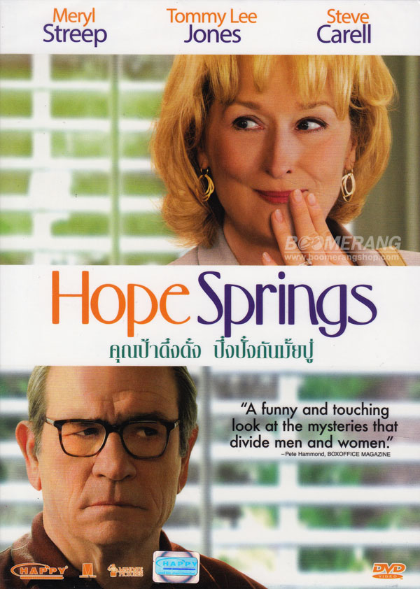 Hope Springs เป็นผลงานของผู้กำกับจาก The Devil Wears Prada ดังนั้นจึงไม่แปลกใจที่มู้ดและโทนของหนังจะไปในอารมณ์คล้ายๆเรื่องนั้น ซึ่งเนื้อเรื่องก็ตามชื่อเรื่องเลยคือ คู่รักที่อยู่กินกัน 31 ปี จนเริ่มจืดชืดอย่างหนักต้องพยายามหาวิธีที่จะรักษาความสัมพันธ์และเติมเต็มความสุขของชีวิตคู่ให้กลับไปปึ๋งปั๋งแบบเดิมให้ได้ (ดารารุ่นใหญ่เล่นกันได้น่ารักมากครับ)
