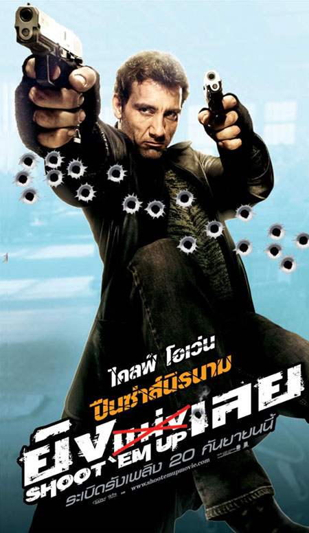 ตั้งชื่อไทยได้ไม่สนกองเซ็นเซอร์มากๆ สำหรับ Shoot ‘Em Up ยิงแม่งเลย ตัวหนังกับพล็อตเดิมๆที่พระเอกต้องปกป้องชีวิตของเด็กคนหนึ่งจากกลุ่มมือปืนที่ตามล่าอย่างบ้าระห่ำ โดยที่ต้องสืบสาวเรื่องราวไปด้วยว่าทำไมคนพวกนั้นต้องตามฆ่าเด็กคนนี้