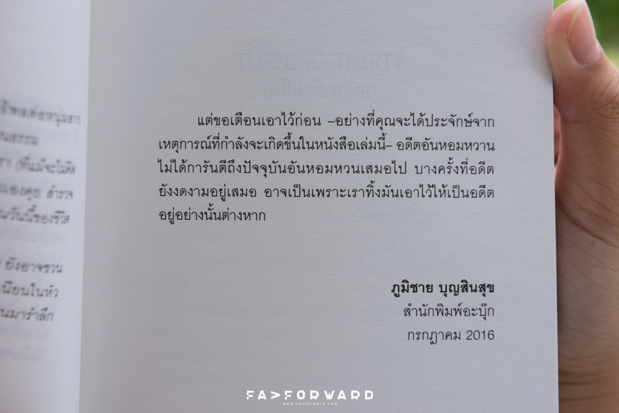 ประโยคที่ภูมิชาย บุญสินสุขได้เขียนบอกไว้ในหน้าคำนำของหนังสือเรื่อง “Turning Thirty ปีนี้ไม่อยากโสด” เป็นประโยคที่ใช้นิยามหนังสือเล่มนี้ได้ตรงใจที่สุด และยังเป็นประโยคชวนสะกิดใจให้เรากลับมาย้อนมองตัวเองอีกครั้ง โดยเฉพาะเมื่อเรามีอายุใกล้วัย 30 ในอีกไม่กี่เดือนข้างหน้า