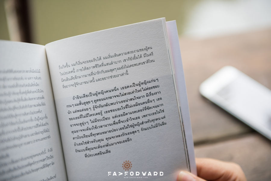 หนังสือเล่มนี้ทำให้เราได้เปิดโลกกว้างขึ้น แม้จะไม่ได้ไปเยือนอินเดียด้วยตัวเอง เพียงแค่เรื่องราวระหว่างบรรทัดก็ชวนตื่นตา ตื่นตะลึง และชวนเหนื่อยแทนพวกเขาได้ เพราะหนังสือเล่มนี้เป็น ‘บันทึกการเดินทาง’ ที่ทำให้หนอนหนังสืออย่างเราได้เปิดประสบการณ์แปลกใหม่ เสมือนเดินทางไปเยือนอินเดียไปพร้อมกับปั้น