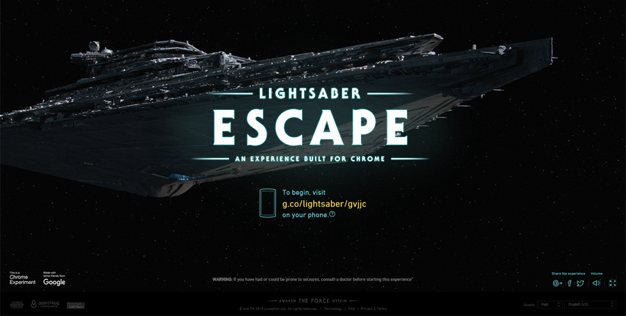 ยักษ์ใหญ่แห่งวงการไอทีอย่าง Google ก็ไม่รอช้า ได้ปล่อยกิมมิคเล็กๆน้อยบนเว็บไซต์เพื่อให้เข้ากับกระแส StarWars 7 ที่ฟีเวอร์อยู่ในขณะนี้ โดยสามารถเปลี่ยนมือถือของเราให้เป็นดาบ Lightsaber ไว้เล่นกับจอคอมพิวเตอร์ได้ และที่สำคัญไม่ต้องลงแอพลิเคชั่นใดๆให้ยุ่งยากด้วย เพียงแค่เข้าเว็บไซต์จากบราวเซอร์ของมือถือเท่านั้น จะเป็นอย่างไรไปชมกันครับ
