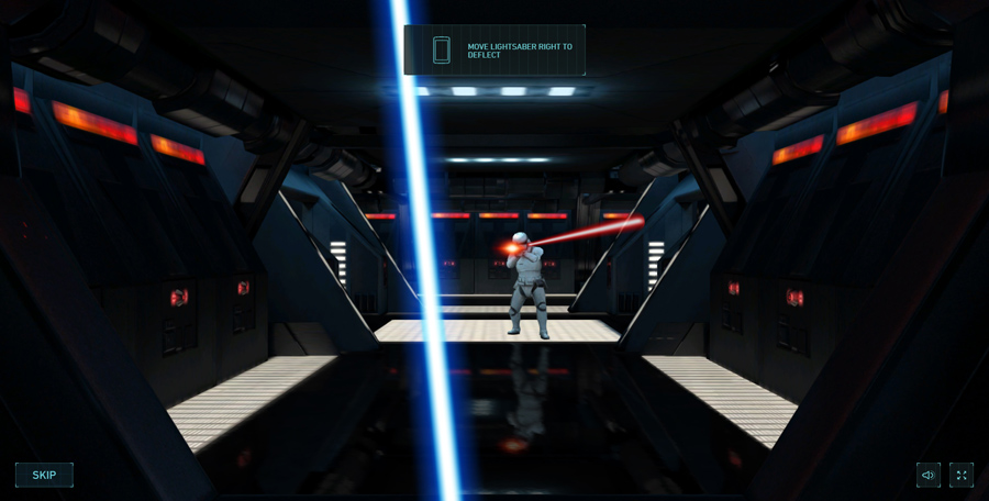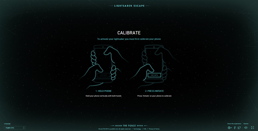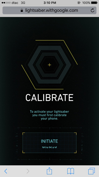 (เมื่อกดปุ่ม Initiate หน้าจอมือถือจะแสดงผลเป็นด้ามของดาบ Lightsaber)