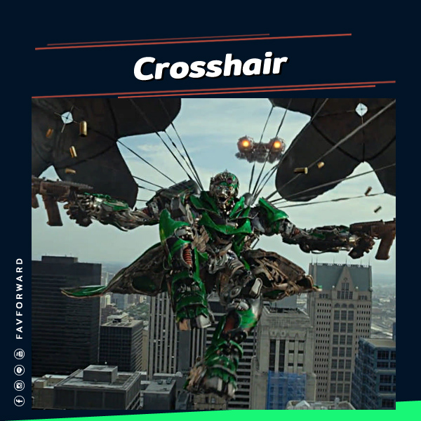 Crosshair (ครอสแฮร์) หัวหอกผู้เชี่ยวชาญด้านการผลิตอาวุธของกลุ่ม Autobots จุดเด่นคือความแม่นยำในการรัวปืนกลที่เป็นอาวุธคู่ใจ โดยครอสแฮร์สามารถปรับเปลี่ยนร่างกายให้กลายเป็น Chevrolet C7 Corvette Stingray สีเขียวสุดจี๊ดได้