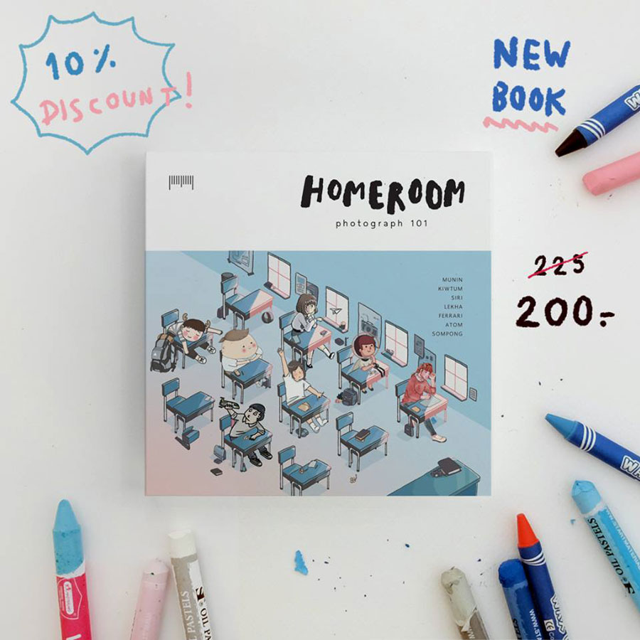 “HOMEROOM : Photograph 101” รวมนิยายภาพเกี่ยวกับรูปถ่าย ถ่ายทอดโดย มุนินฺ / คิ้วต่ำ / SIRI / เลขา / อะตอม / ferrari / SOMPONG จำหน่ายโดยสำนักพิมพ์ 10 มิลลิเมตร บูธ D10 ราคาเต็ม 225 บาท ลดเหลือ 200 บาท
