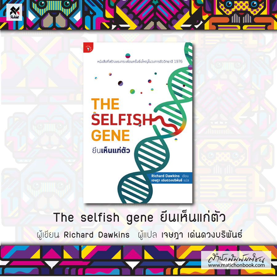 “THE SELFISH GENE ยีนเห็นแก่ตัว” หนังสือที่นำเสนอมุมมองใหม่ให้แก่ทฤษฎีวิวัฒนาการของชาร์ลส์ ดาร์วินมองผ่านสายตาของ ‘ยีน’ โดยริชาร์ด ดอว์กินส์ จำหน่ายโดยสำนักพิมพ์มติชน บูธสำนักพิมพ์มติชน โซนพลาซ่า ราคา 390 ลดเหลือ 332 บาท