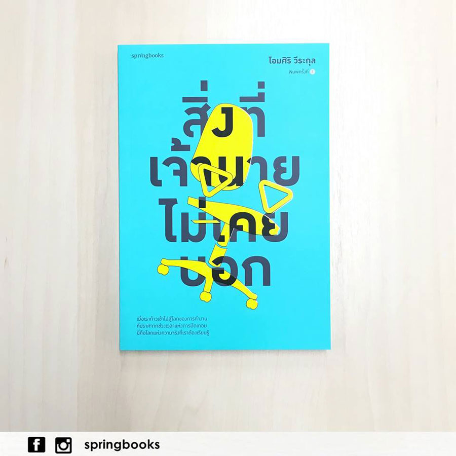 “สิ่งที่เจ้านายไม่เคยบอก” หนังสือรวมบทความที่มาบอกเล่าประสบการณ์ของสมรภูมิการทำงานจากปลายปากกา โอมศิริ จำหน่ายโดยสำนักพิมพ์ Springbooks บูธ Q26 (Naiin & Amarin) ราคา 169 บาท