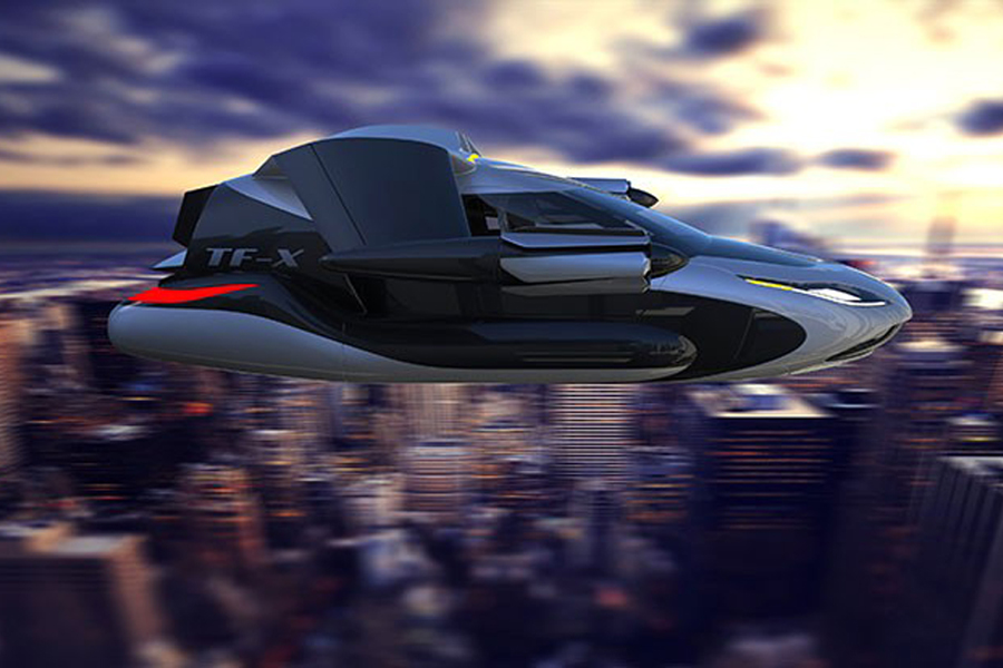 • TF-X รถบินได้ 4 ที่นั่ง อีกหนึ่งรถยนต์บินได้ที่มีจุดเด่นอยู่ที่จำนวนที่นั่ง ซึ่งมีถึง 4 แถมยังมีหน้าตาคล้ายรถยนต์มากที่สุดอีกด้วย โดย TF-X อาจเรียกได้เป็นต้นแบบแรกๆ ของการดีไซน์รถบิน เพราะรถบินได้คันนี้เผยสู่สายตาให้เราได้ชมกันไปตั้งแต่ปี 2013 ส่วนการเข้าสู่โหมดการบินจะอาศัยใบพัดสองข้างที่พับเก็บได้ ซึ่งสามารถบินได้เร็วถึง 322 กม./ชม. และขับเคลื่อนได้ไกลถึง 805 กม. แม้ TF-X จะออกมาก่อนรถบินได้รุ่นอื่นๆ แต่ในปัจจุบันก็เป็นเพียงต้นแบบที่กำลังพัฒนา เพื่อให้ใช้ได้จริงในอนาคต