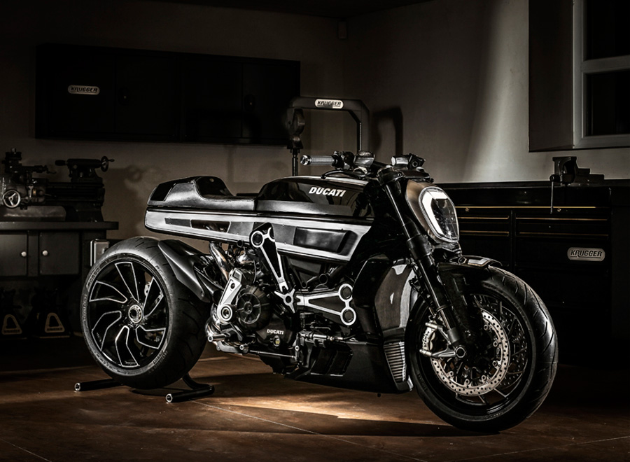 มอเตอร์ไซค์ตัวแรงจากแบรนด์ Ducati ซึ่งถูกนำมาแต่งใหม่โดย Fred Krugger ในสไตล์ Cafe Racer เพิ่มความเท่ โดยไม่ทิ้งความดุ ไม่ว่าจะเป็นเฟรมถังน้ำมันที่ตกแต่งในแนวตรง เปลี่ยนเบาะให้กลายเป็นเบาะนั่งเดี่ยว พร้อมด้วยแฮนด์จับรูปแบบใหม่ เพิ่มความโฉบเฉี่ยวด้วยไฟท้ายสี่เหลี่ยมคางหมู ส่วนหน้าปัดได้เพิ่มความเท่ด้วยการสลักชื่อ Krugger ขณะที่ขุมพลังงานของ Thiverval ยังคงเป็นเครื่องยนต์เดิมคือ Testastretta DVT V-twin ขนาด 1,262 cc โดยมีกำลังสูงสุด 156 แรงม้า ที่ 9,500 รอบ/นาที ส่วนแรงบิดสูงสุด 128.9 นิวตันเมตร ที่ 5,000 รอบ/นาที
