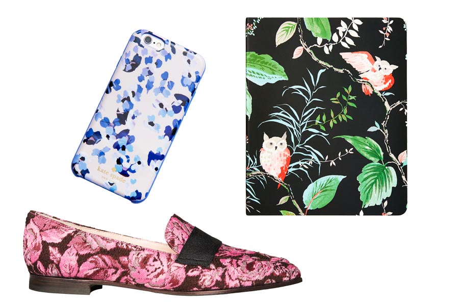 จัดเต็มสไตล์เฟมินินให้กับคุณแม่ KATE SPADE พาไปสู่ฤดูกาลของผู้ที่ชื่นชอบในศิลปะ! ความเป็นเอกลักษณ์และความโรแมนติกที่แทรกซึมอยู่ในลวดลายกราฟฟิก ให้อารมณ์แบบเฟมินีน ไม่ว่าจะเป็นการใช้ลายพิมพ์ดอกไม้ผสานกับลายปัก ซึ่งล้วนแล้วแต่เป็นเสน่ห์ของสาวเท่ที่เต็มเปี่ยมไปด้วยความสง่างาม ซึ่งน่าจะเหมาะกับผู้หญิงหวานๆ อย่างคุณแม่ รองเท้าคู่สวยทำจากวัสดุที่ดูหรูหราและลายพิมพ์ที่สวยงาม ในลวดลายดอกไม้ เคสใส่โทรศัพท์เพ้นท์ลายดอกไม้และเคส iPad ที่พาบุกหมู่มวลพฤกษา สัตว์ป่าน้อยใหญ่ทำให้สัมผัสได้ถึงกลิ่นอายธรรรมชาติและความโรแมนติก
