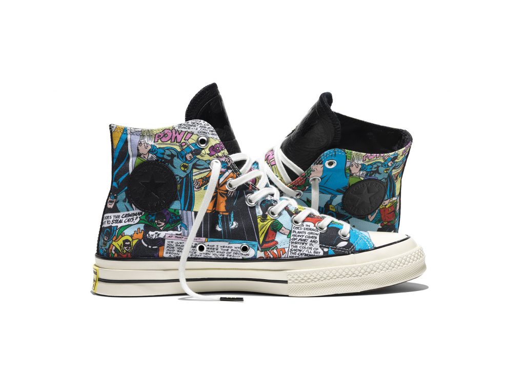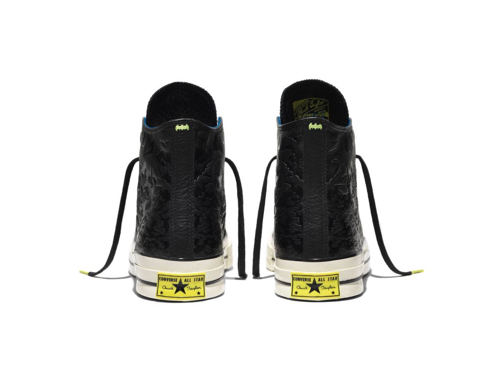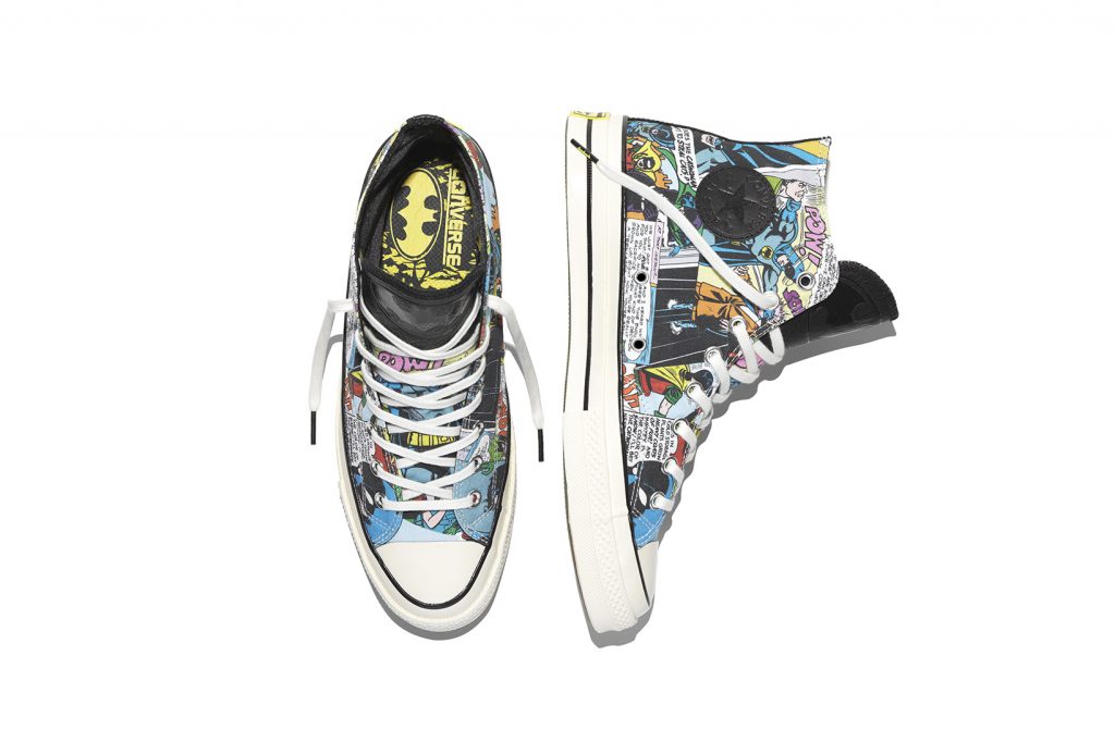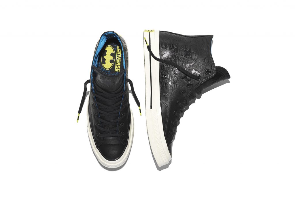โดยคอลเล็กชั่นนี้ Converse ได้ดึงเอารุ่นเก๋า Chuck Taylor All Star ’70 รังสรรค์ด้วยดีไซน์ใหม่ใช้วัสดุคือ ผ้าใบ และหนัง โดยหนังสีดำเป็นการสื่อแทนสัญลักษณ์ของแบตแมน ซึ่งเป็นสีที่เขาใช้อยู่ประจำตัว ปั๊มลวดลายนูนฝูงค้างคาวที่กำลังบินอยู่จำนวนมากไว้รอบด้านรองเท้า ลิ้นรองเท้าถูกปั๊มด้วยโลโก้ค้างคาวของ BATMAN แผ่นรองรองเท้าด้านในตีตราสัญลักษณ์ BATMAN และ CONVERSE อยู่คู่กัน ตกแต่งด้วยโลโก้ค้างคาวตัวเล็กๆแฝงไว้ที่บริเวณปลายเชือกรองเท้าและด้านหลังของรองเท้า เชือกรองเท้าใช้สีดำ ไฮไลท์อยู่ที่พื้นรองเท้าด้านล่างเป็นยางแบบใสเผยให้เห็นลายกราฟิกด้านใน ซึ่งข้างหนึ่งจะเป็นตัวการ์ตูน BATMAN และอีกข้างหนึ่งจะเป็นตัวการ์ตูน ROBIN คู่หูของเขานั่นเอง