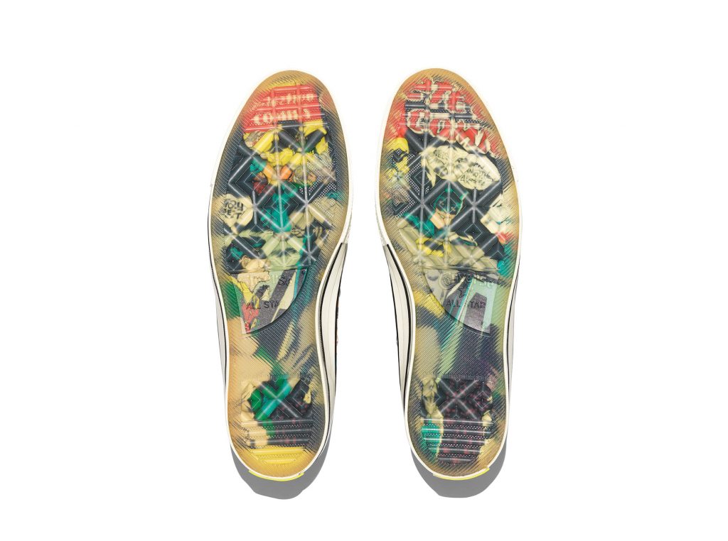 ดำเนินเรื่องโดย BATMAN, ROBIN และ CATWOMAN และวายร้ายตัวอื่นๆ เบื่อๆ เมื่อไรก็หยิบรองเท้าขึ้นมาอ่านแทนการ์ตูนได้นะ ลวดลายพิมพ์ Comic เสมือนจริงลงบนผ้าใบทำให้รองเท้าคู่นี้ดูมีความคลาสสิคขึ้นมาทันที ถึงแม้ก่อนหน้านี้ Converse จะเคยออกรุ่นที่มีลวดลายแบตแมนออกมาเช่นกัน แต่ก็เป็นเพียงลายพิมพ์บนพื้นผ้าใบไม่ได้ใส่ความพิเศษเฉกเช่นคู่นี้ให้น่าสะสม นอกจากนี้ยังมีการปั๊มโลโก้ที่บริเวณลิ้นรองเท้า และใส่สัญลักษณ์ BATMAN กับ CONVERSE ไว้ที่บริเวณแผ่นรองเท้าด้านใน อีกทั้งยังมีสัญลักษณ์ BATMAN ขนาดเล็กที่บริเวณปลายเชือกรองเท้าและด้านหลังของรองเท้าอีกด้วย และแน่นอนว่ากิมมิกพื้นรองเท้าด้านล่างยังคงเป็นยางแบบใสทำให้เห็นลวดลายเท่ๆ จาก comic book คู่นี้