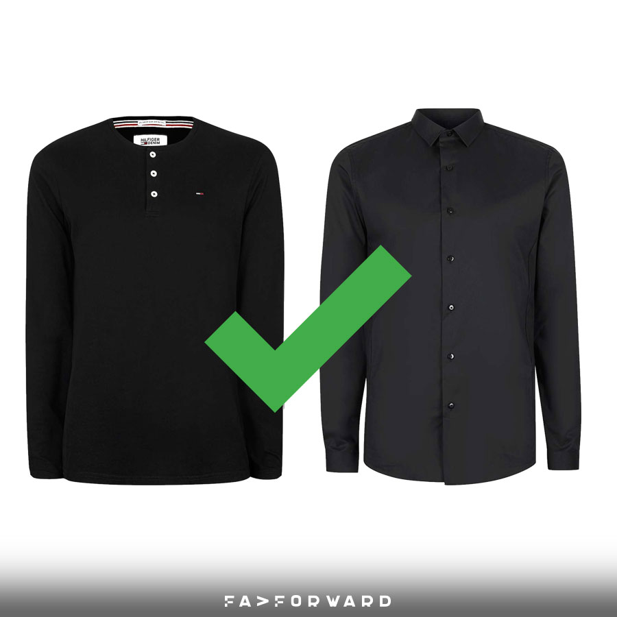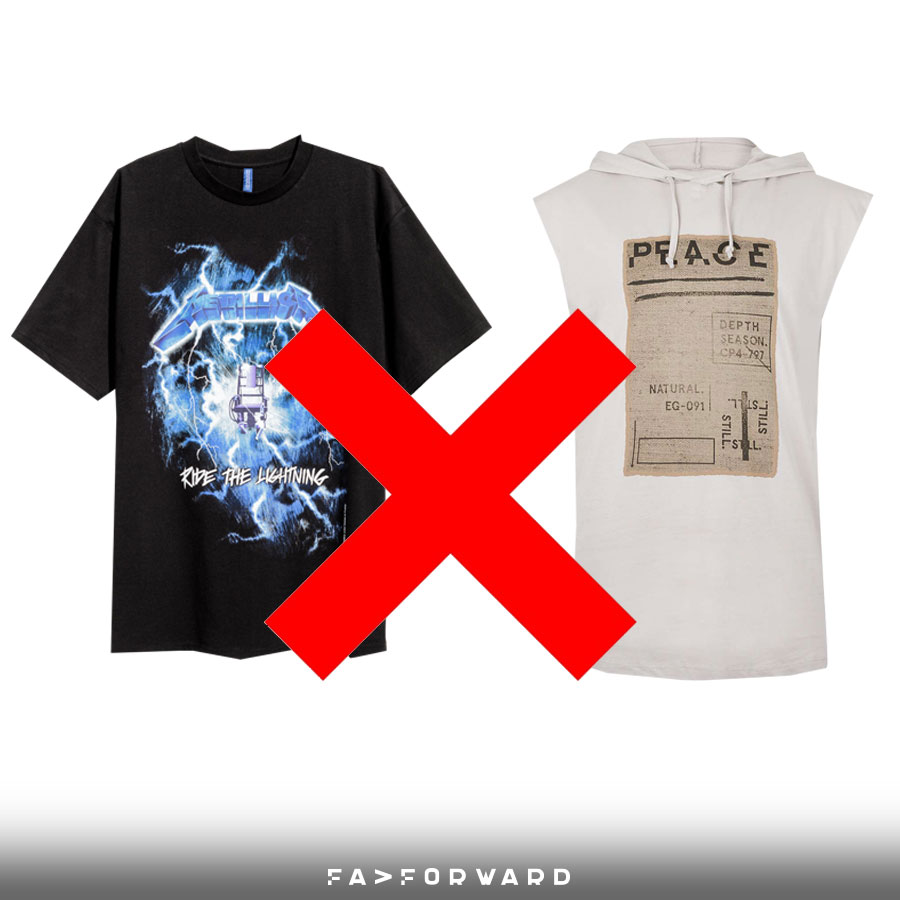 - เสื้อยืด ถึงเป็นสีดำก็ไม่ควรมีลวดลายสีสัน หรือเสื้อสีขาว-ดำแบบแขนกุด