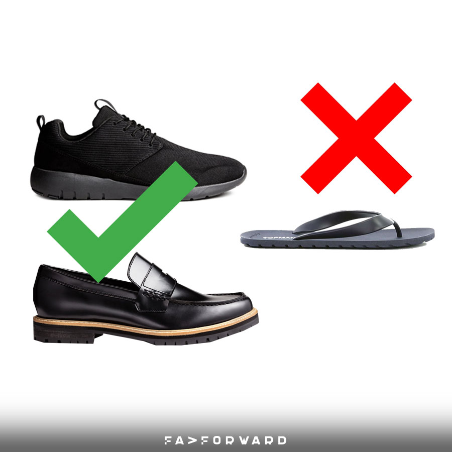 - หากไม่มีกางเกงทรงสุภาพ จำเป็นต้องใส่กางเกงยีนส์ ให้เป็นสีดำสนิท
