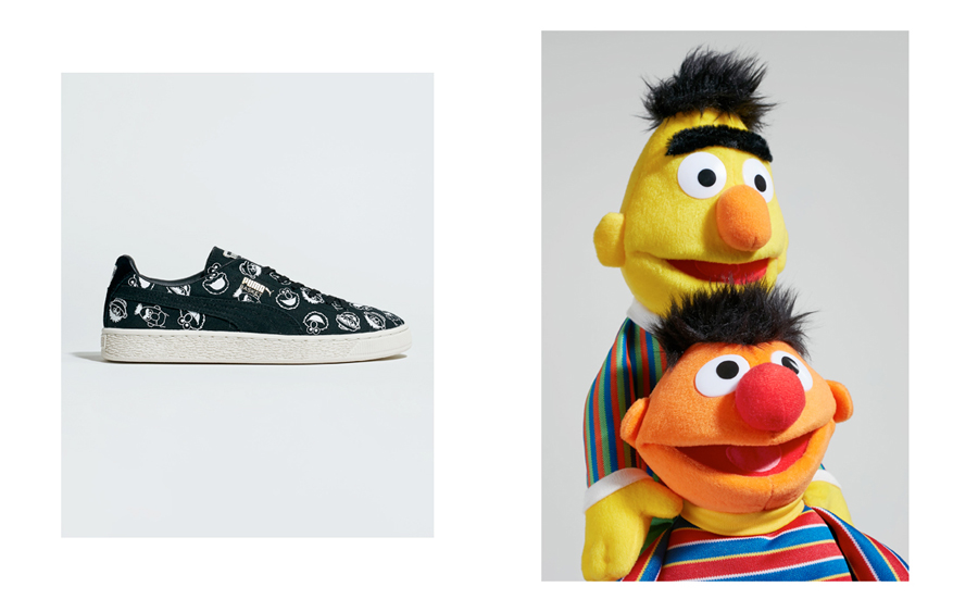 • PUMA x Sesame Street Basket สนีกเกอร์แบบผ้าที่พิมพ์ลายเส้นของ Sesame Street โดยมีให้เลือก 2 สีอีกเช่นกัน แต่เป็นโทนสีเรียบๆ อย่างสีขาวและสีดำ
